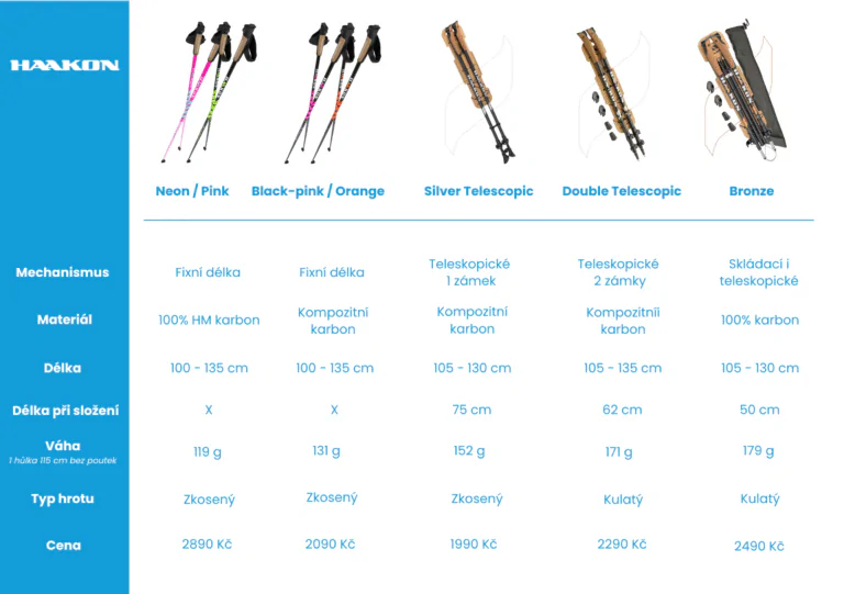 Vybíráte si pečlivě hole na běžky a chcete pro sebe nejlepší poměr cena/výkon? Pak jsou hole HAAKON pro Vás! Vyvinuto v Jizerkách s Technickou Univerzitou v Liberci!
